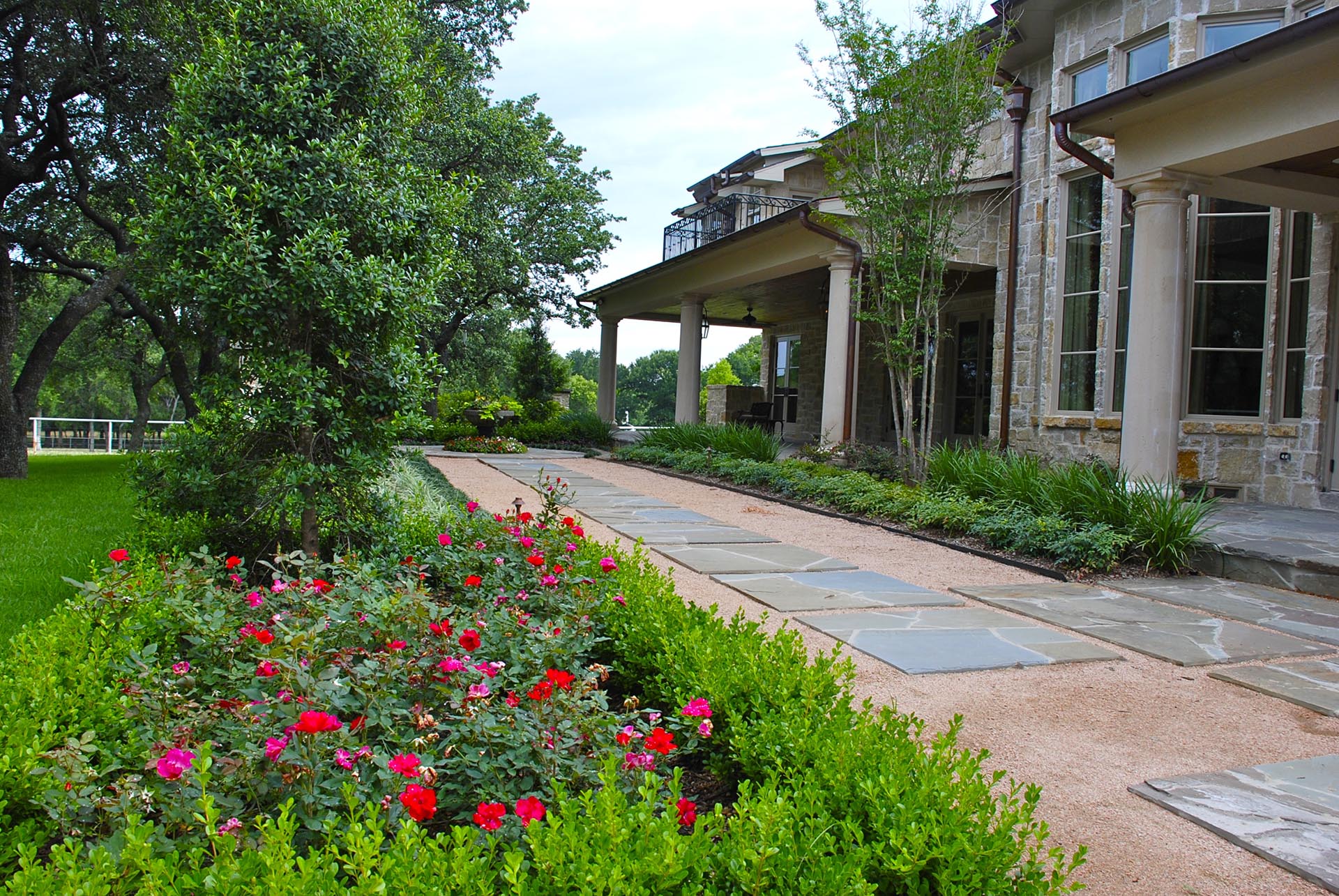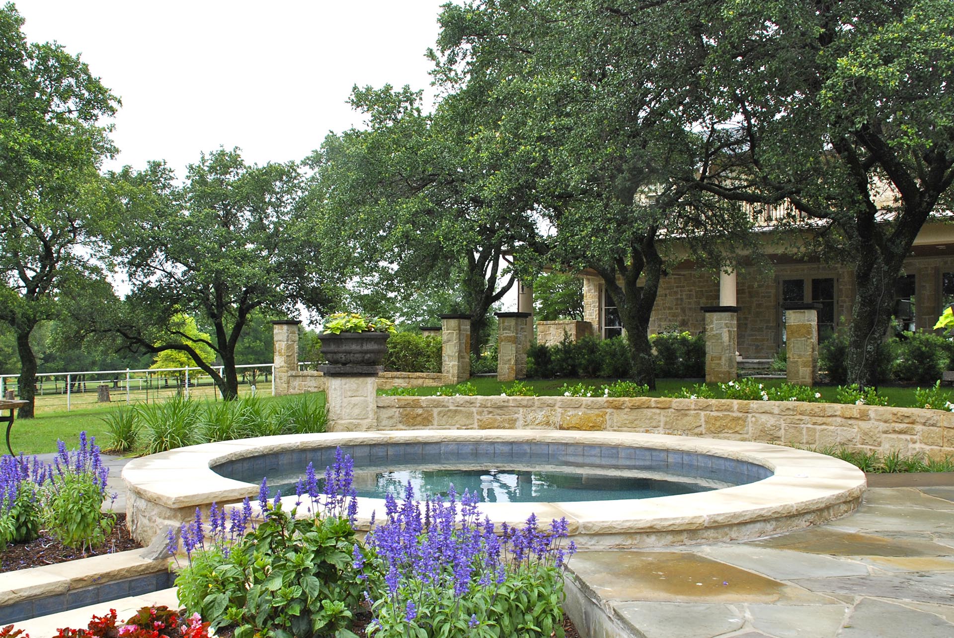 Located in Parker Texas this estate which is over 20 acres includes a pool, French Country Rose Garden, outdoor kitchen, fire pit and stocked bass pond with an arched bridge to an interior island.